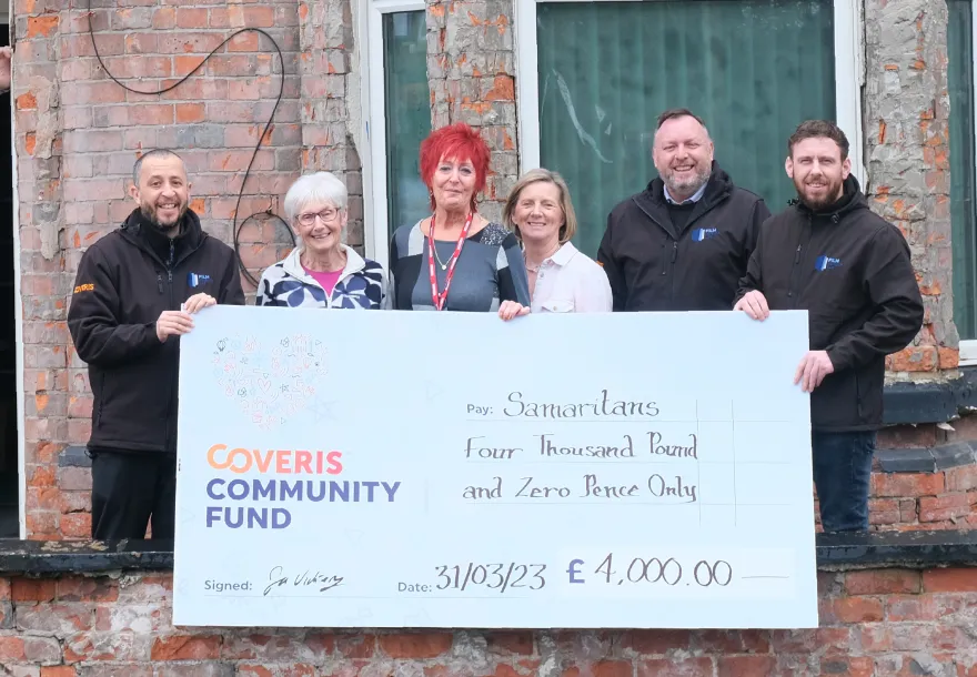 Annie Mills, Mid Cheshire (Northwich) Samaritans Branch Director, added: “Coveris has led the way with its kind donation, and really helped us get started on our unexpected fundraising journey to repair our building. We’re really pleased to be working with such an amazing, innovative company.