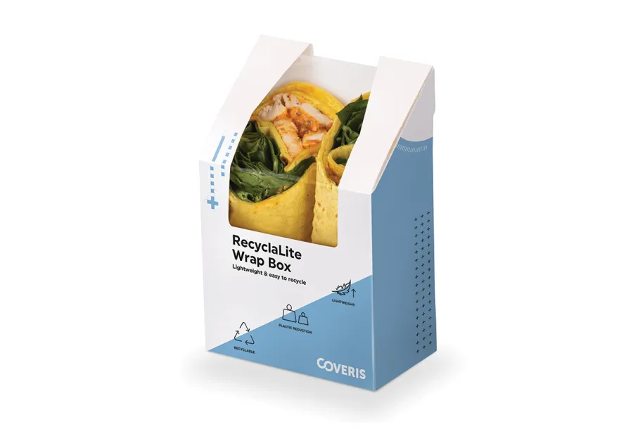 Awarded Cartonboard Pack of the Year in the UK Packaging Awards 2020, Coveris’ RecyclaLite packaging is lightweight and easy to recycle, featuring 40% less plastic. Achieving a reduced carbon footprint, Coveris has expanded the innovative and industry leading RecyclaLite range to include wrap boxes, having previously launched for sandwich skillets. RecyclaLite packaging uses sustainability sourced board and is recyclable under OPRL 2020 and 2023 recycling rules for lined board packaging.