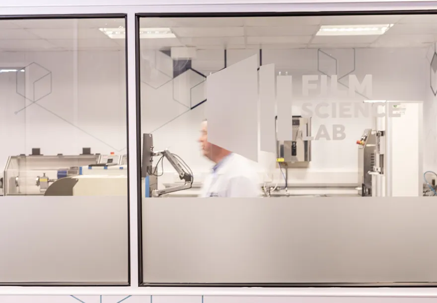 Located at Europe’s largest co-extrusion facility, the lab supports the development, formulation and analysis of new and improved recyclable polyethylene (PE) films for food and non-food applications. Responsible for developing the sustainable films of the future, the lab targets material reduction through the delivery of best-in-class, downgauged films alongside the development of recyclable barrier and laminate replacement films with advanced functional performance up to 9-layers.