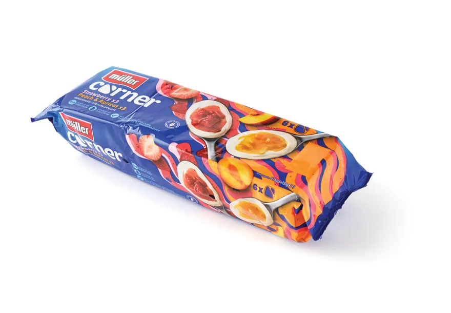 - Flexo Surface Print on Film Wide (>1000mm): Müller Corner Strawberry, Peach & Apricot