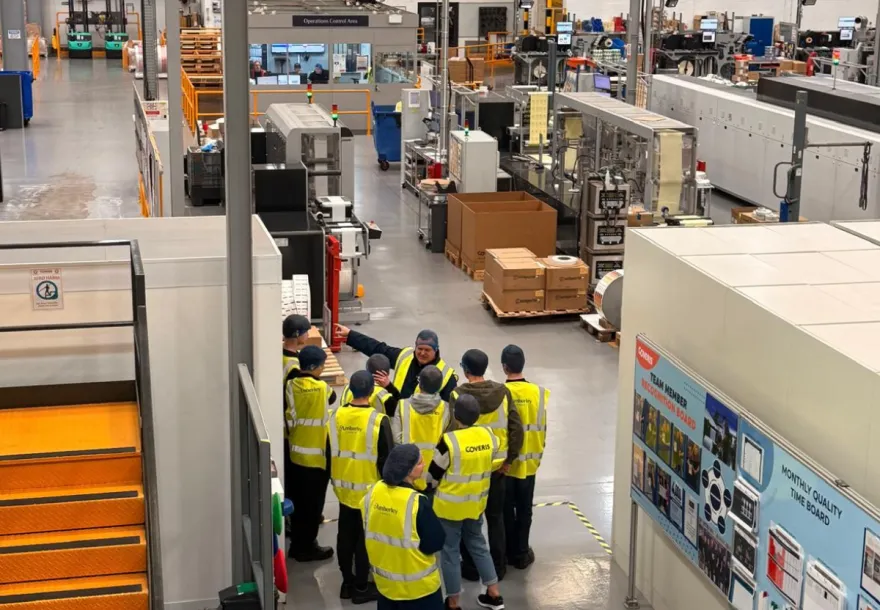 The students began their day with an introduction to Coveris and Amberley Labels before touring our factory, ReCover, and studio. They observed live printing processes, spoke with apprentices, and received personalised labels made just for them.