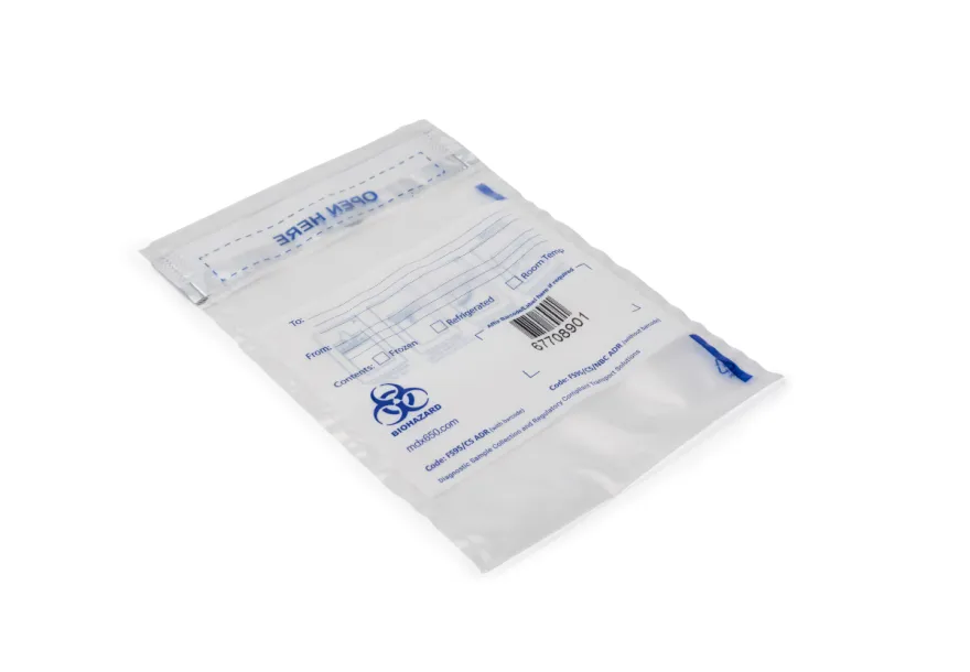 The high security bags support the safe collection and testing of PCR tests which need to be tamper evident, leak proof to an internal pressure of 95 kPa (0.95 bar) and compliant with UN3373 for transport of category B biological samples. The bags also utilise leading track and trace technology for unique sample identification and traceability.