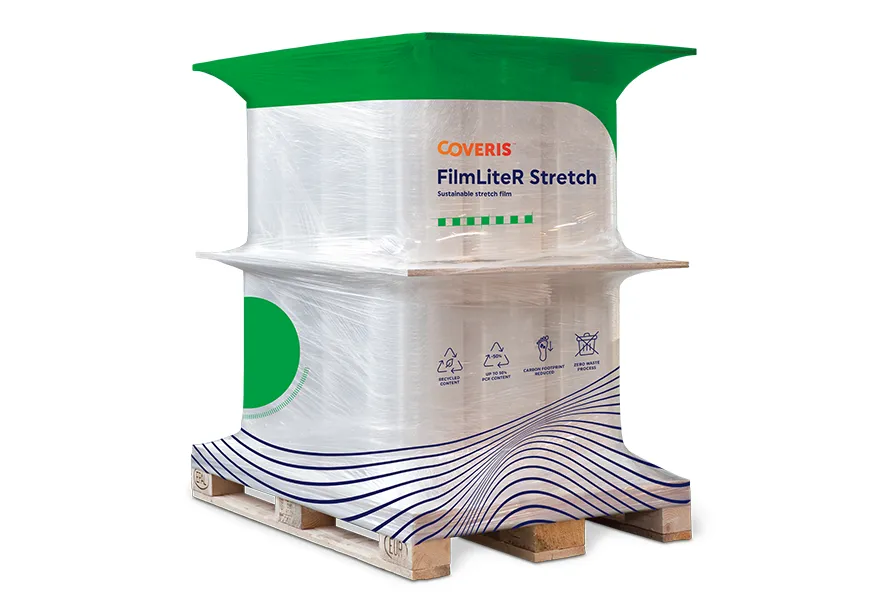 Our high-power stretch film grade with up to 30% recycled content (PCR) was specifically designed for the beverage industry to achieve identical pallet stability, pallet weight, and machine performance when compared to 100% virgin grade stretch films.