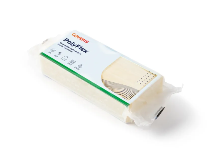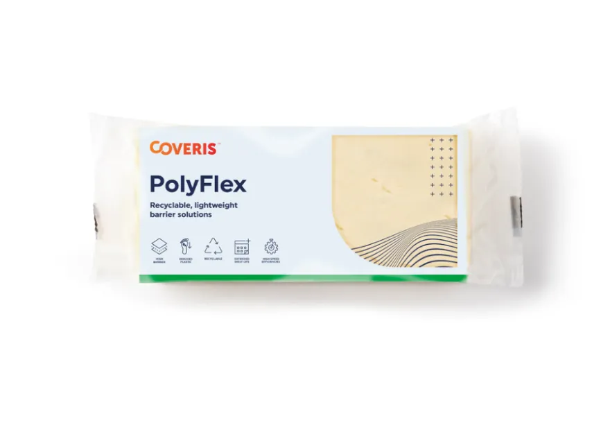 PolyFlex is a game-changer for block cheese packaging, taking Coveris’ offer to the next level. Made from a mixed polyolefin structure, PolyFlex replaces traditional mixed nylon laminates – one of the hardest to recycle materials in block cheese packaging. This breakthrough innovation has already been recognised with the Best New Concept Award at the UK Packaging Awards 2024, highlighting its potential to set a new standard in the industry.