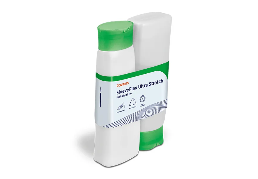Our sleeves, SleeveFlex Ultra Stretch, offer exceptionally high elasticity. Our sleeves provide top-of-the-range decoration for all types and shapes of container. Thanks to their high elasticity, these sleeves are designed to adapt perfectly to the shape of the container without the need for glue or heat, which reduces the carbon footprint. In addition, their design allows for effortless separation and flotation during the recycling process, improving environmental efficiency. Drawing on our expertise in polymer science and extrusion development, we have created low-density PE films for the lightest material options available.